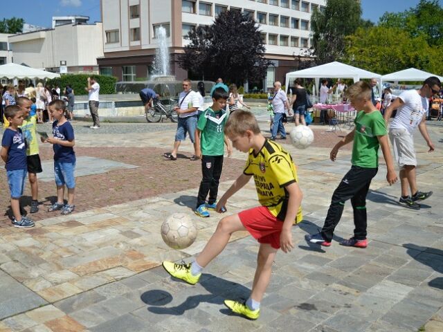 За първа година в Детския панаир се включиха деца треньори от врачанския футболен клуб "Ботев”. Много от посетителите се присъединиха към демонстративната тренировка на малките Ботевци и получиха насоки за това как могат да се включат в лятното училище на отбора.