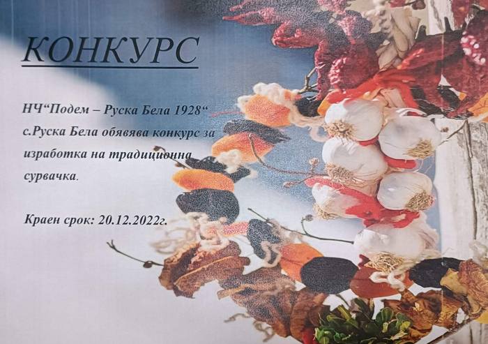 Конкурс за традиционна българска сурвачка, украсена с традиционни естествени материали – вълна, пуканки, сушени плодове и др. стягат в мездренското село Руска Бела. Организатори на проявата е местното НЧ „Подем – Руска Бела 1928“. Резултатите от конкурса ще бъдат обявени на новогодишното тържество, което ще се състои на 26 декември. Сурвачките ще останат в читалището, където ще бъде направена изложба.