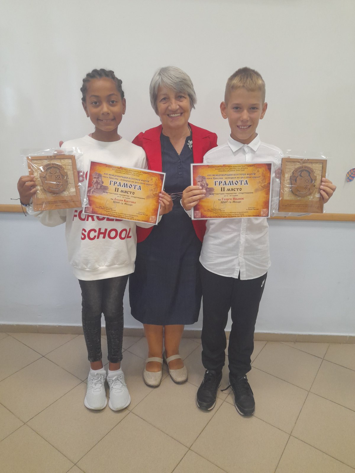 Отново радост за децата от групата за Художествено слово при ЦПЛР в гр. Мездра с ръководител Лилия Христова. Със свои творби те участваха в Осмия международен културен Форум "Велики Преслав -история на цял един народ" в гр.Велики Преслав. Творбите на Лилия Костова и Георги Иванов бяха отличени с второ място и награда в Първа възрастова група. Да са им честити и да се множат в следващите години, пожелават на талантливите ученици от ЦПЛР-Мездра.
