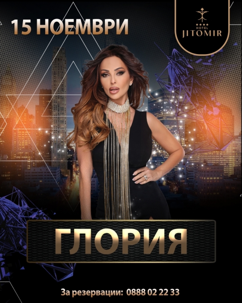 Примата на българския поп фолк Глория идва в хотел “Житомир”-Монтана на 15 ноември.