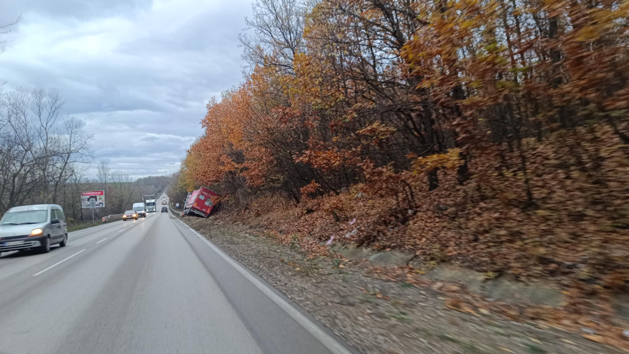 Турски ТИР се обърна край Монтана /СНИМКИ/