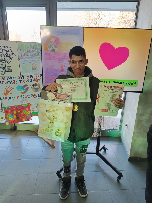 Творбата „Супер Толерант“ впечатлява журито с ясно послание за приемане и уважение към различието — теми, които се вписват както в идеята на конкурса, така и в профила на училището, където работата със СОП ученици е част от ежедневната педагогическа практика.