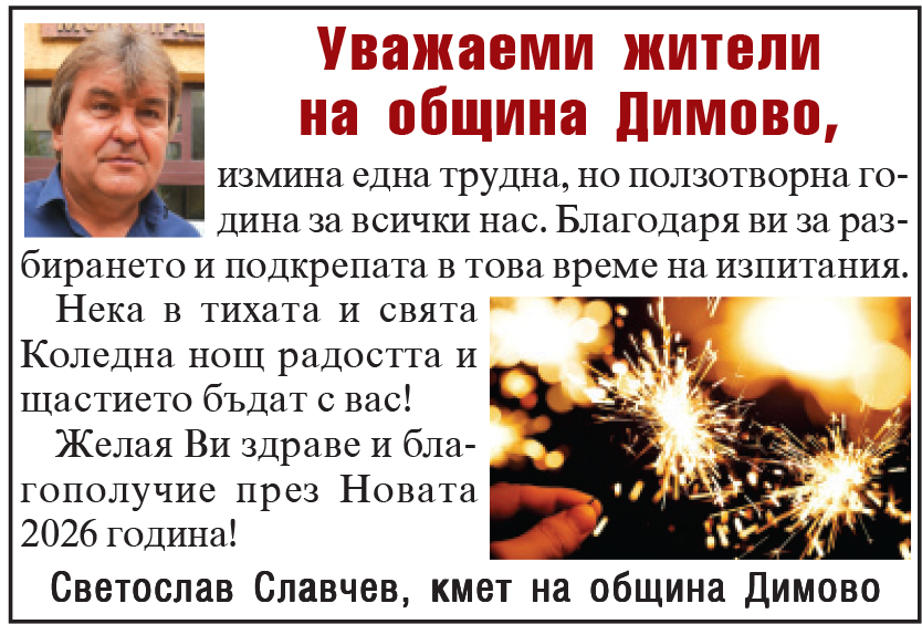 / Поздравление от кмета на община Димово Светослав Славчев
