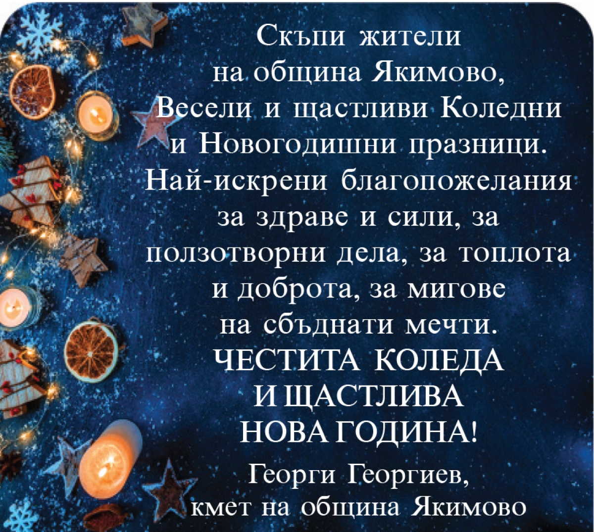 / Честита Коледа от кмета на община Якимово Георги Георгиев