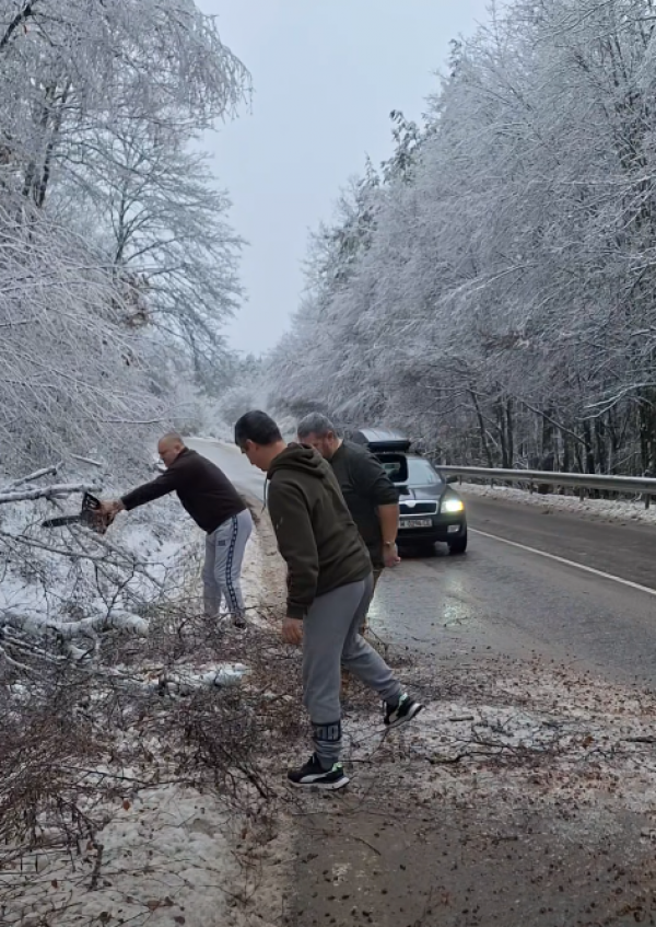 Паднали дървета затрудниха трафика през Петрохан, шофьори разчистиха пътя /СНИМКИ/