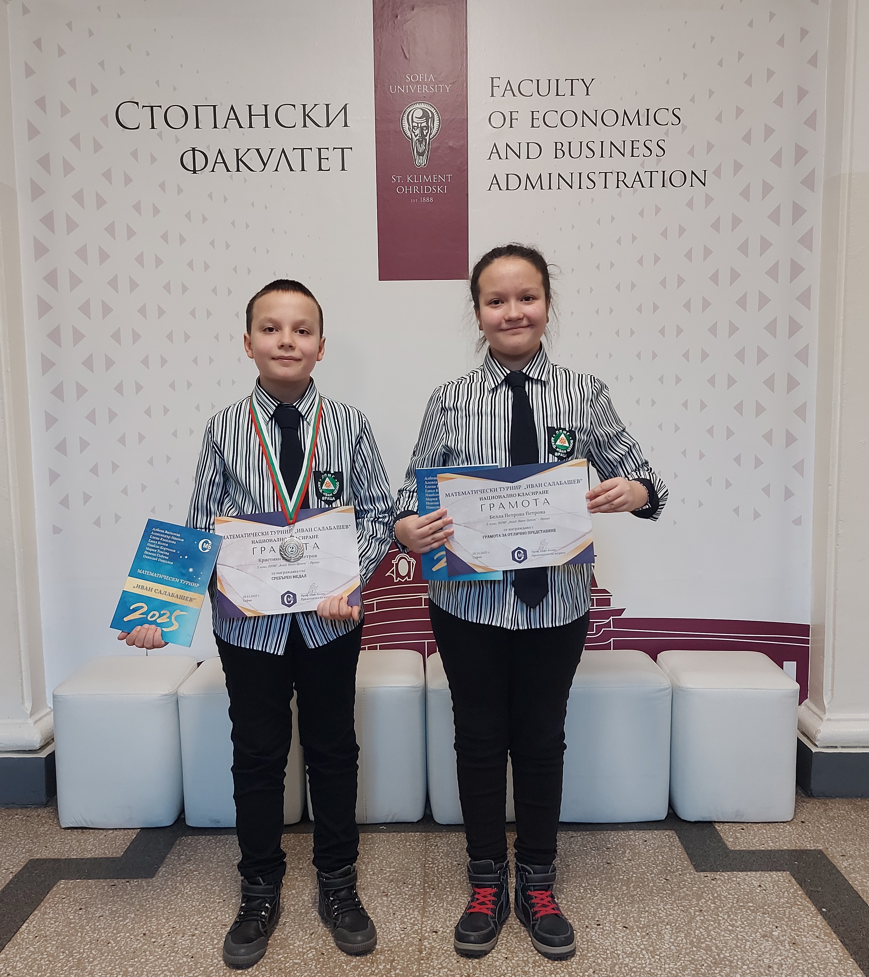 Тържествената церемония по награждаването на първенците се състоя на 18 януари в Стопански факултет на Софийски университет "Св. Климент Охридски", а отличията бяха връчени лично от проф. Емил Колев - председател на журито. Зад успехите на Кристиян и Белла стоят безброй часове труд, вяра и подкрепа от учители, които не просто преподават математика, а вдъхновяват мечти и изграждат бъдеще.