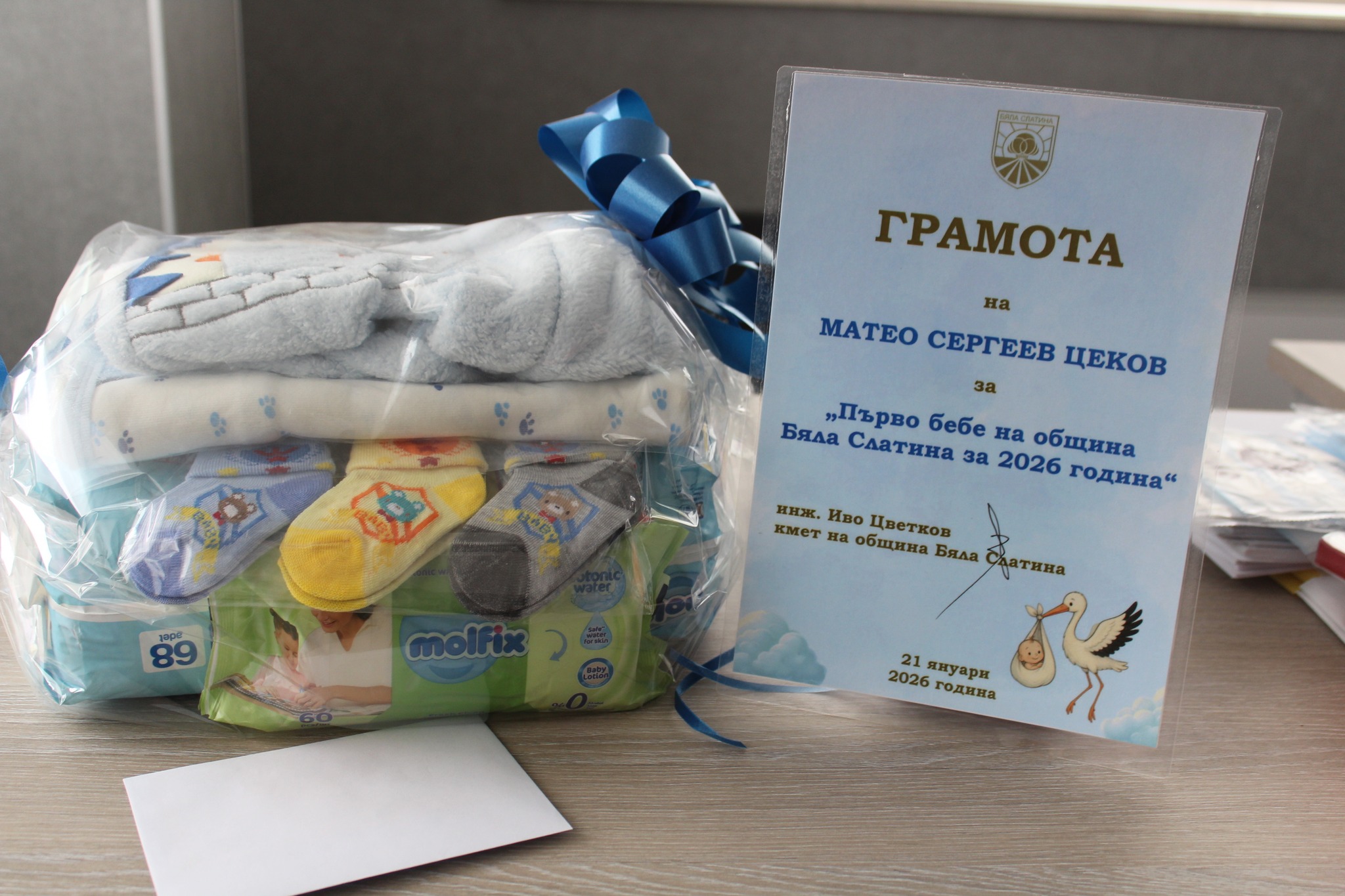 Изненадаха с подаръци първото бебе на Бяла Слатина