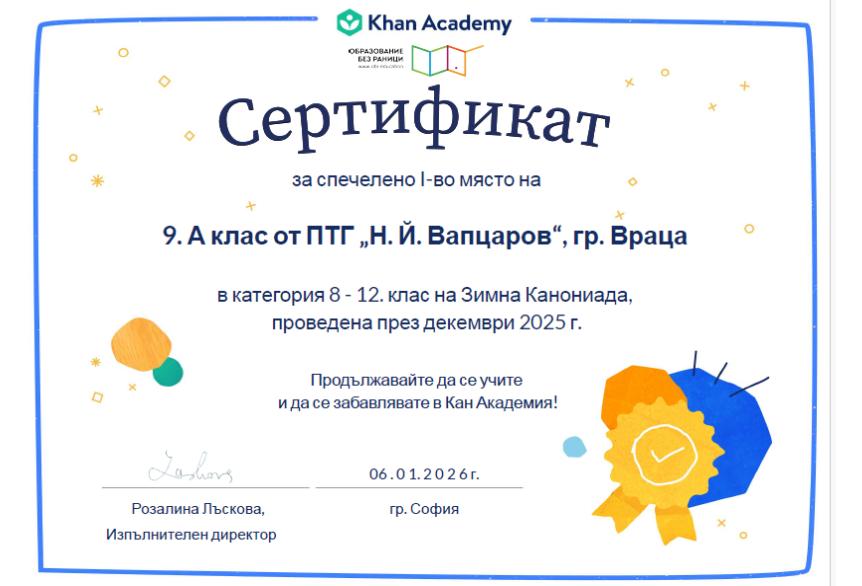 Деветокласници от ПТГ-Враца с победа в математическа надпревара