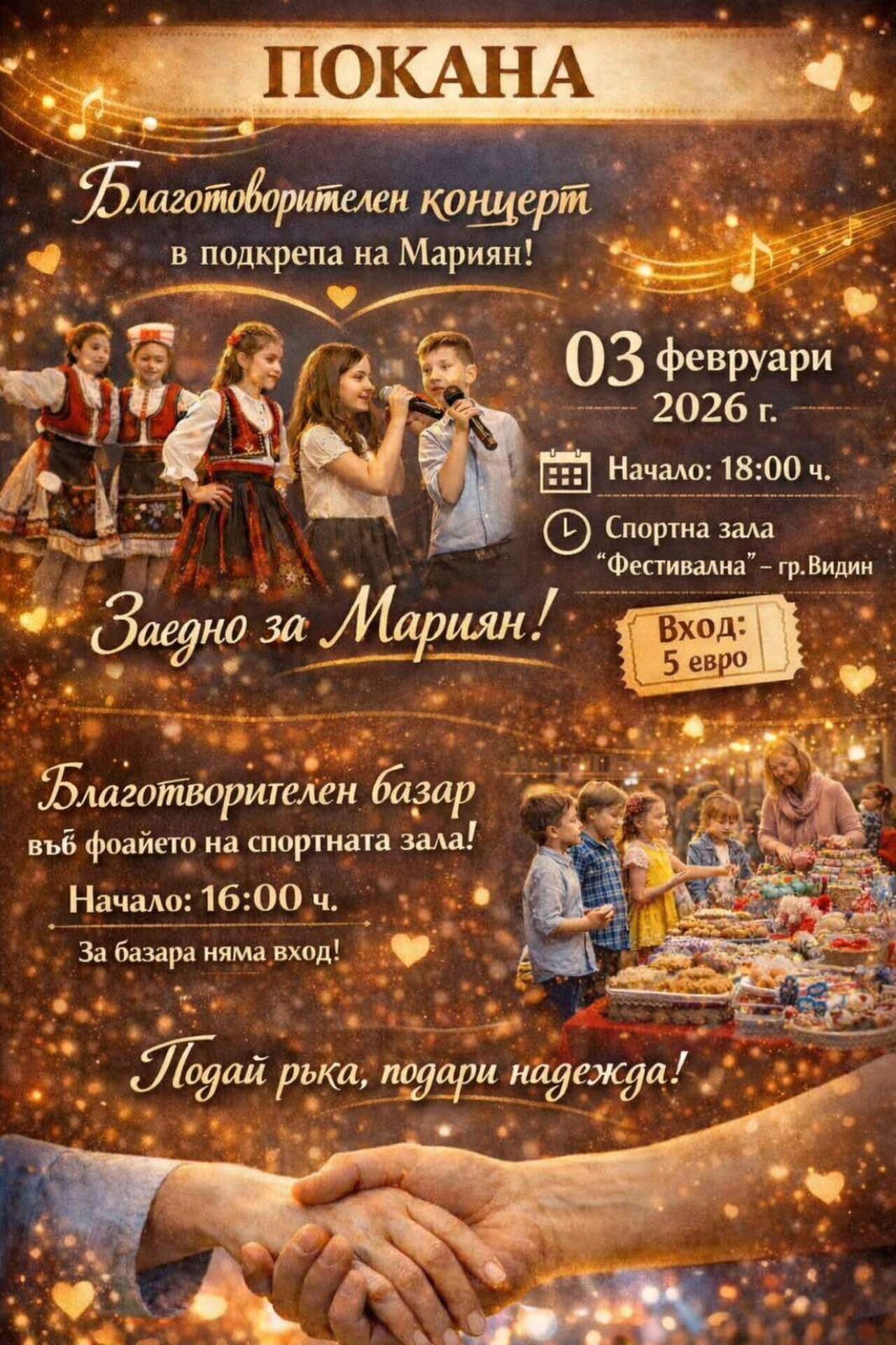 Концерт и базар събират средства в помощ на Мариян Борисов от Видин