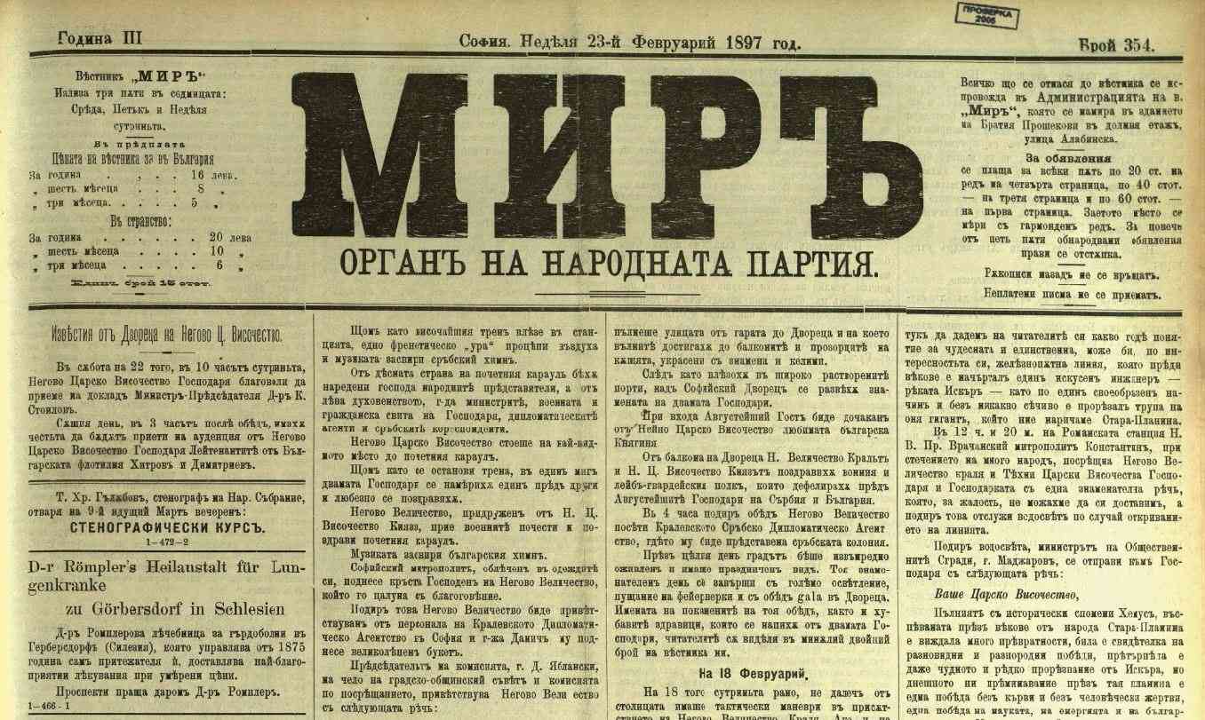 Как буржоазният вестник „Мир“ отразява годишнината от Руско-турската война 1877 – 1878 г.
