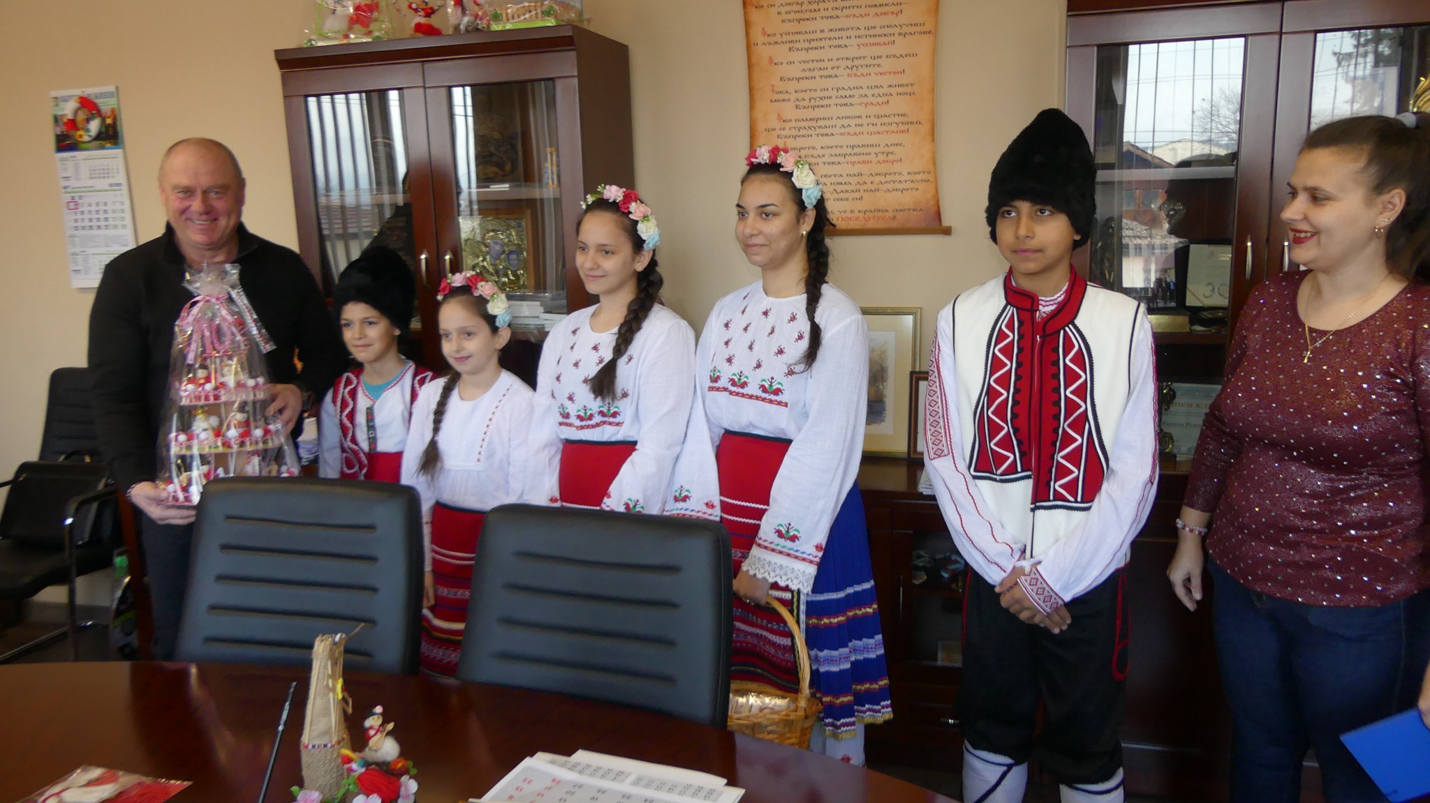 Децата бяха изключително развълнувани от срещата си с кмета и нетърпеливи да му завържат мартенички за здраве и берекет по случай деня на Баба Марта. Традиционно и тази година възпитаниците на читалището посетиха сградата на общината и закичиха с мартеници градоначалника и неговите служители, обиколиха институциите, ДГ „Изгрев“ и зарадваха населението на селото. Облечени в народни носии, децата изненадаха местните управници с кошница, пълна с разнообразни мартеници. Всяка една от тях беше изработена ръчно и носеше духа на празника. Те разказаха за възникването и значението на мартениците и цветовете, от които са изработени и донесоха в общината ведро предпролетно настроение, а кметът Александров им върна жеста, като ги поздрави и също ги закичи с мартеници.