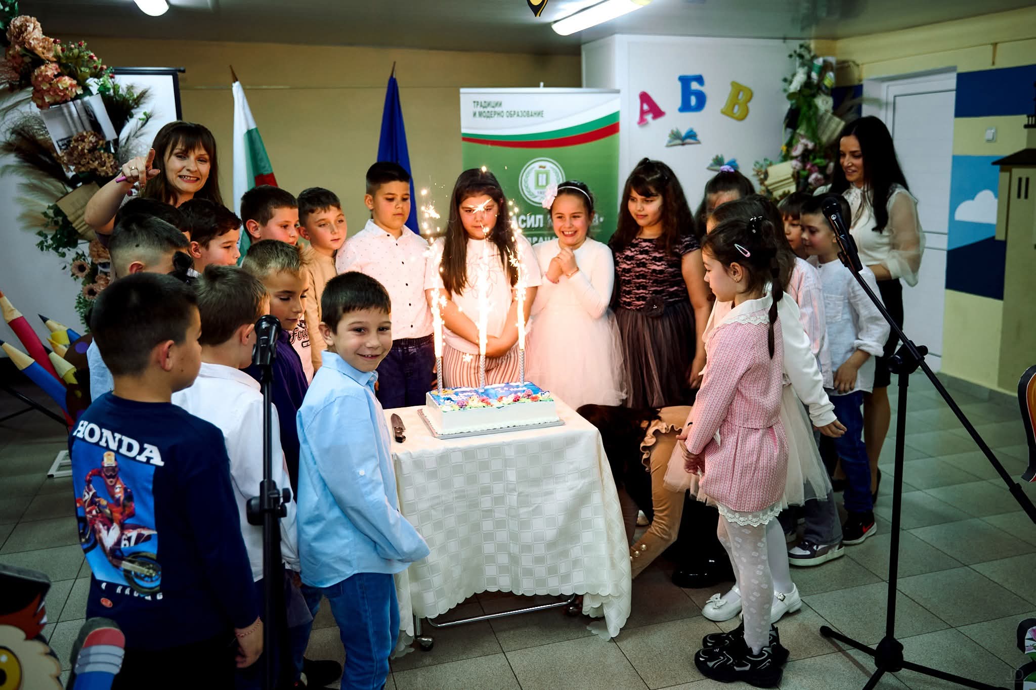 Възпитаниците на Велизара Якимова и Христина Тунова отбелязаха своя празник на буквите. Учениците бяха подготвили програма, в рамките на която представиха драматизации и забавни сценки, пресъздаващи моменти от ежедневието на един първокласник. Акцент в програмата беше изпълнението на ученик, който влезе в ролята на Пенчо и пресъздаде с чувство за хумор неговите училищни неволи.